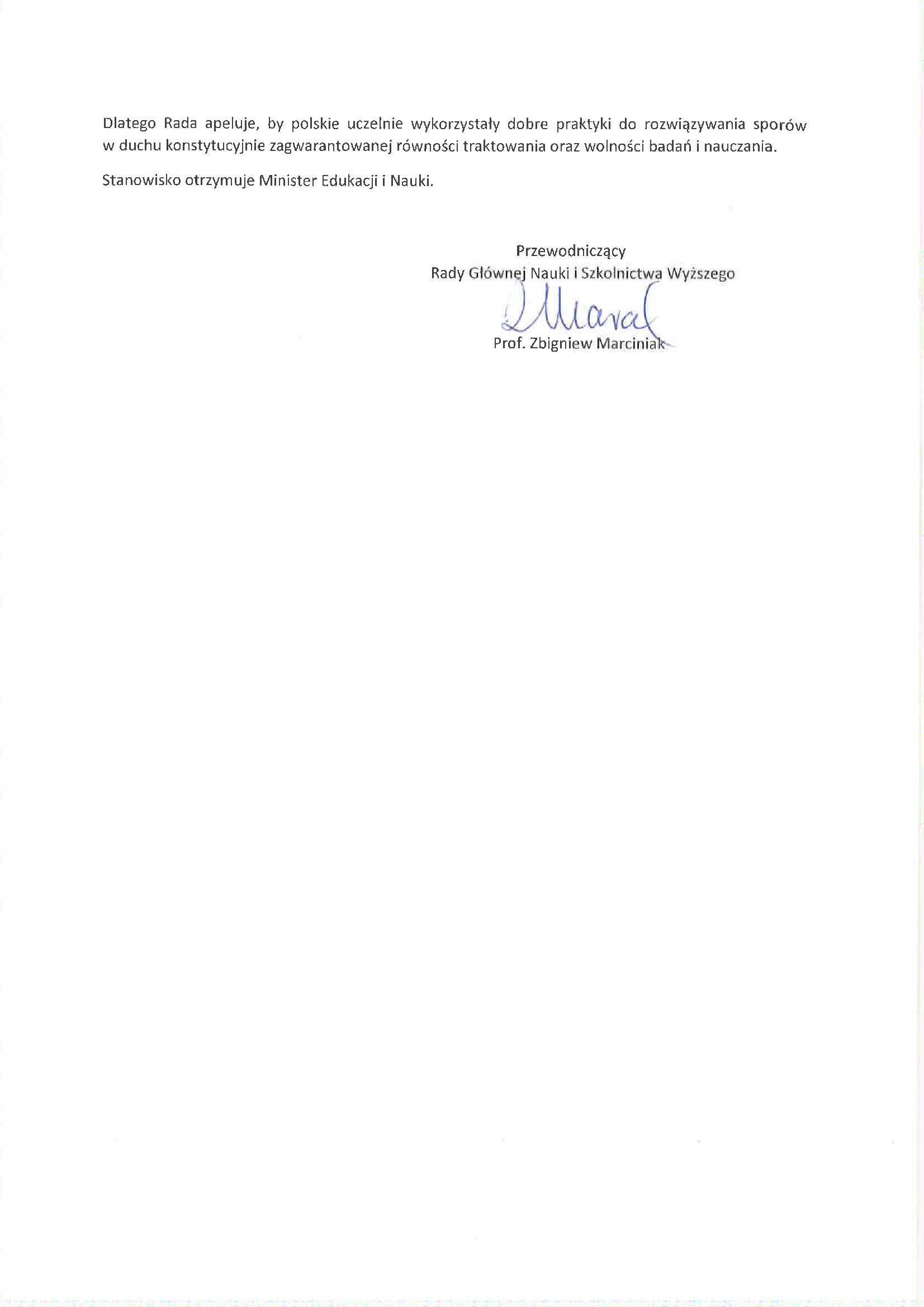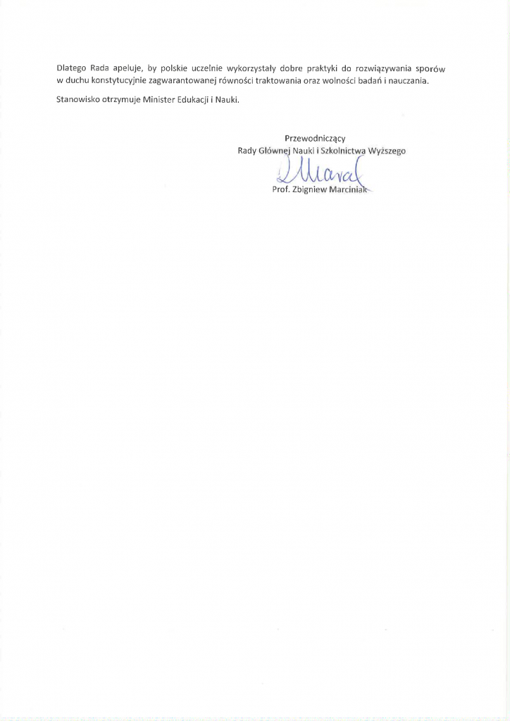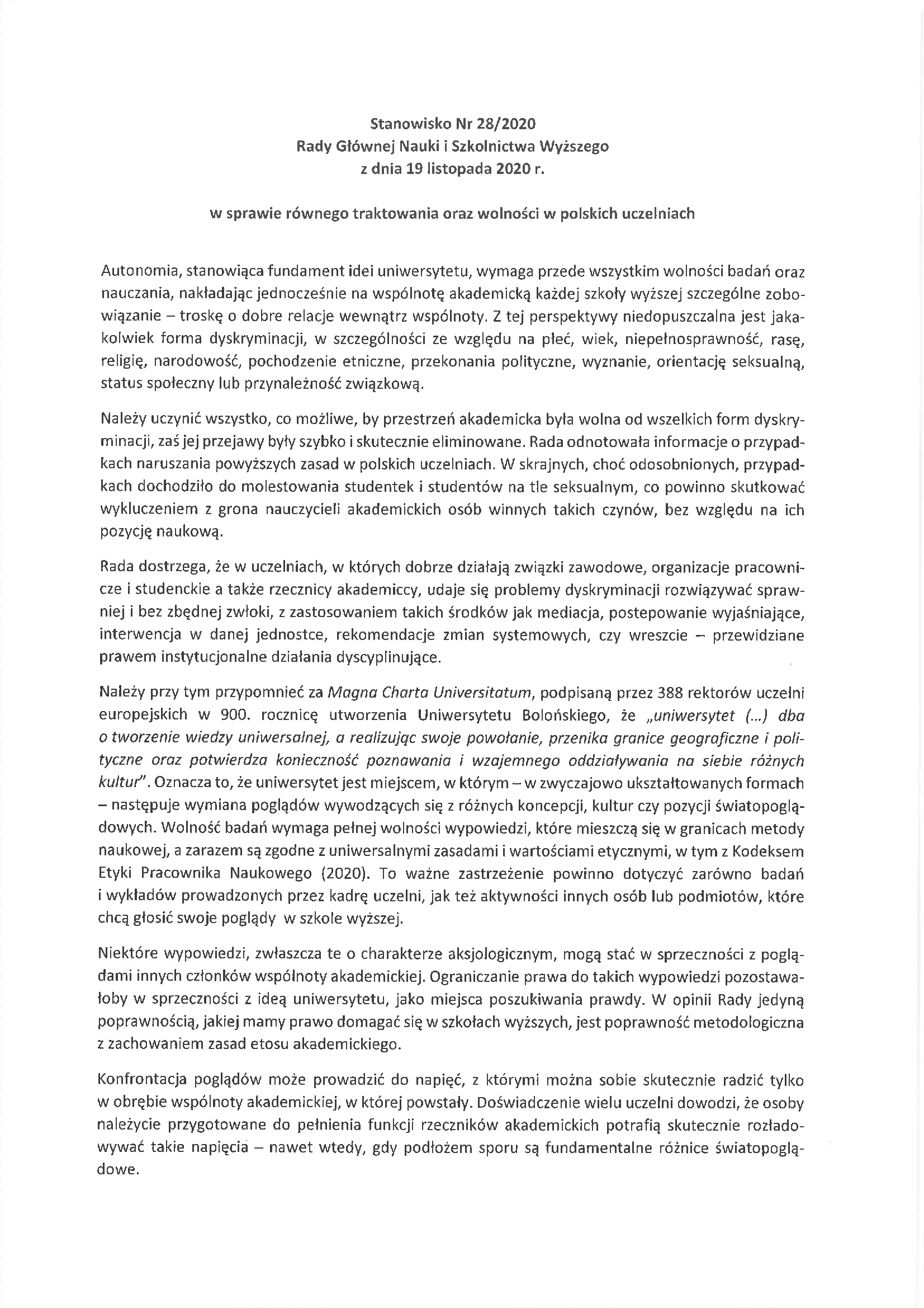 Stanowisko Nr 28/2020 Rady Głównej Nauki i Szkolnictwa Wyższego z dnia 19 listopada 2020 r. w sprawie równego traktowania oraz wolności w polskich uczelniach